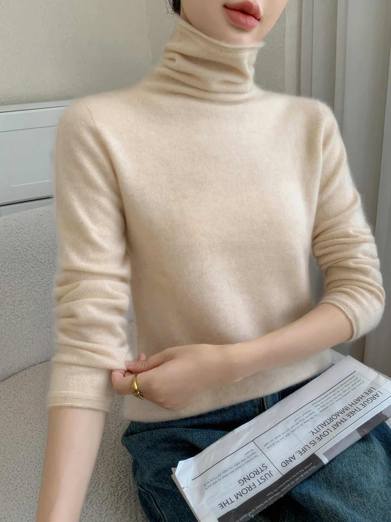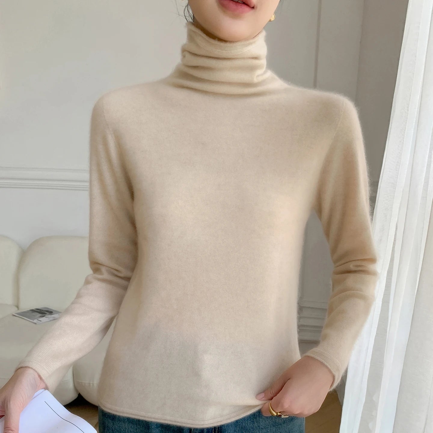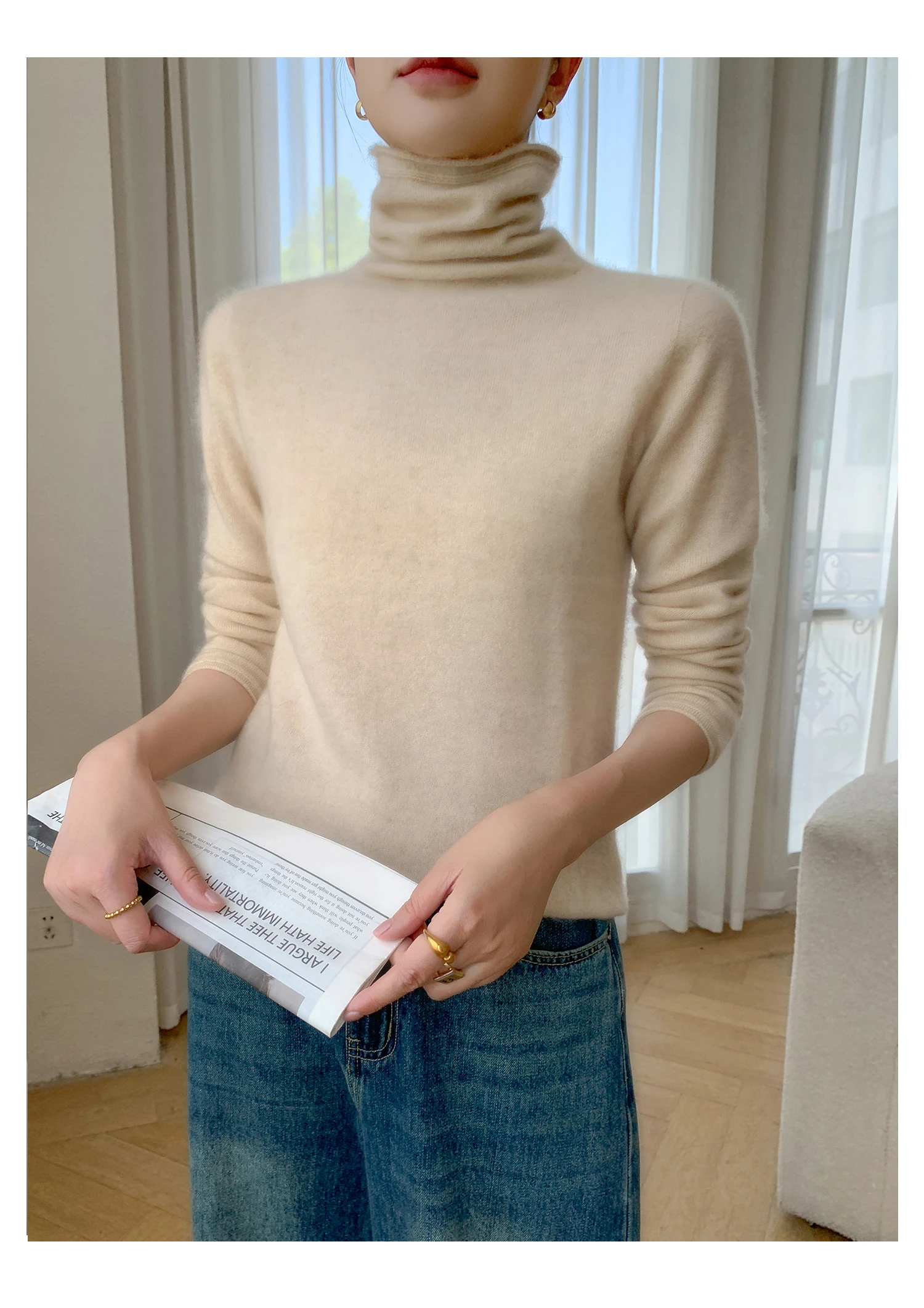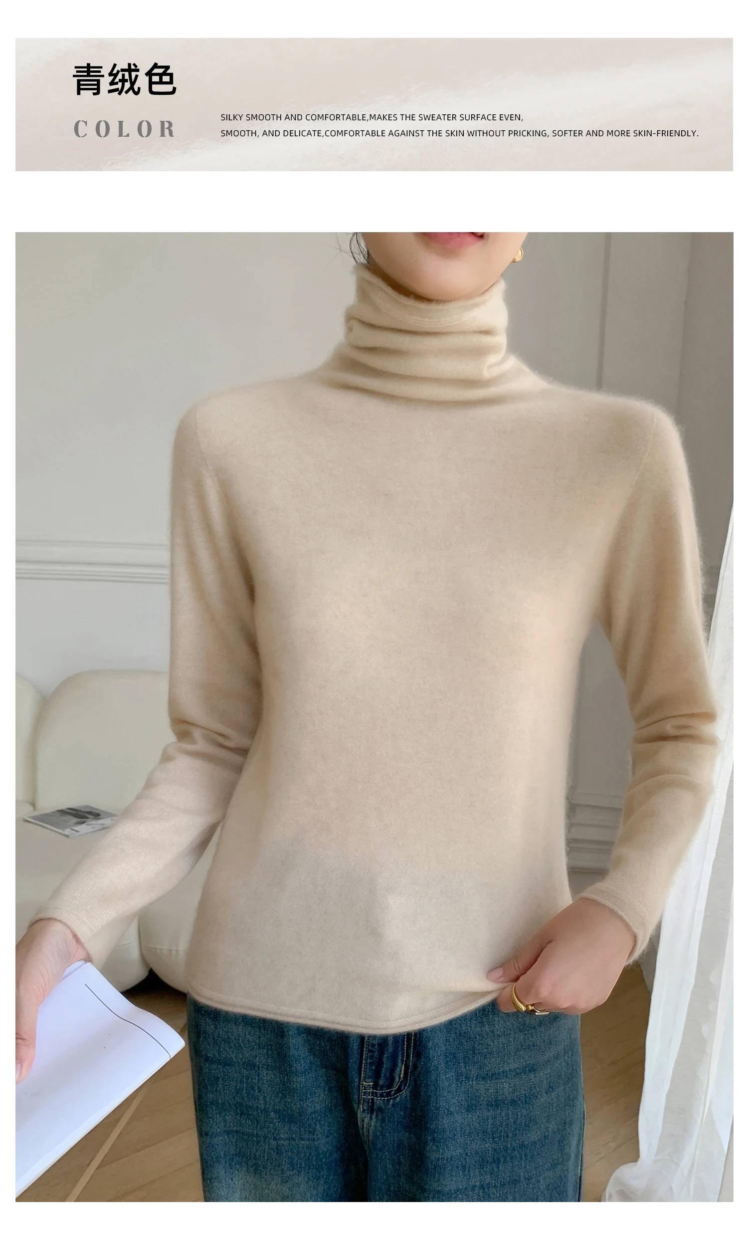 This women's 100% cashmere pullover is designed for ages 25–34, perfect for office wear or casual outings during autumn and winter. Featuring a turtleneck, long sleeves, and ruched details, it combines elegance with comfort. Made from high-quality cashmere, it offers medium-weight warmth, softness, and durability. The A-straight solid design and regular fit enhance your silhouette, providing a versatile and flattering look for professional and everyday settings.